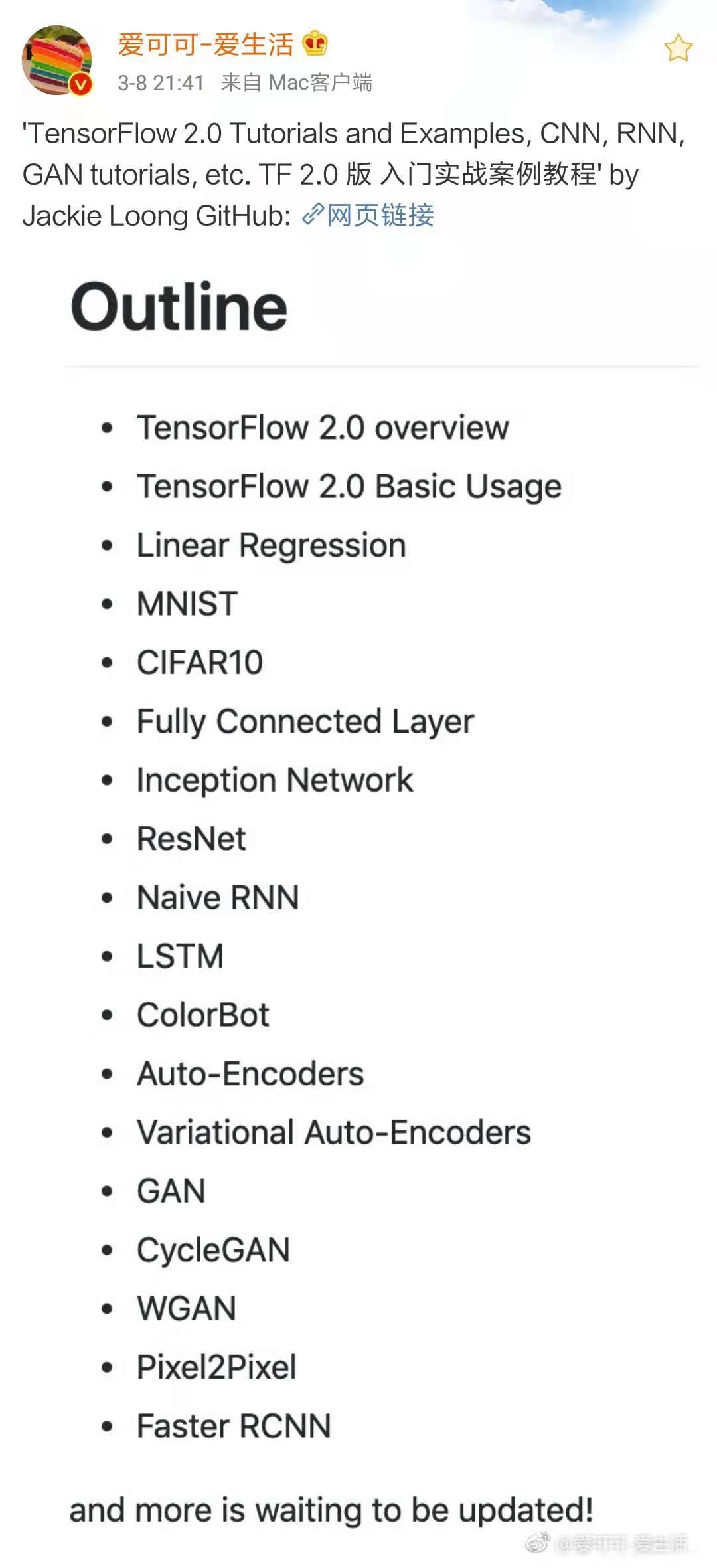 TensorFlow 2.0的视频教程链接:深度学习与TensorFlow 2实战