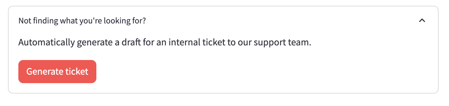 | (CTA to auto generate support ticket draft) | (UI of the auto generated support ticket draft) |