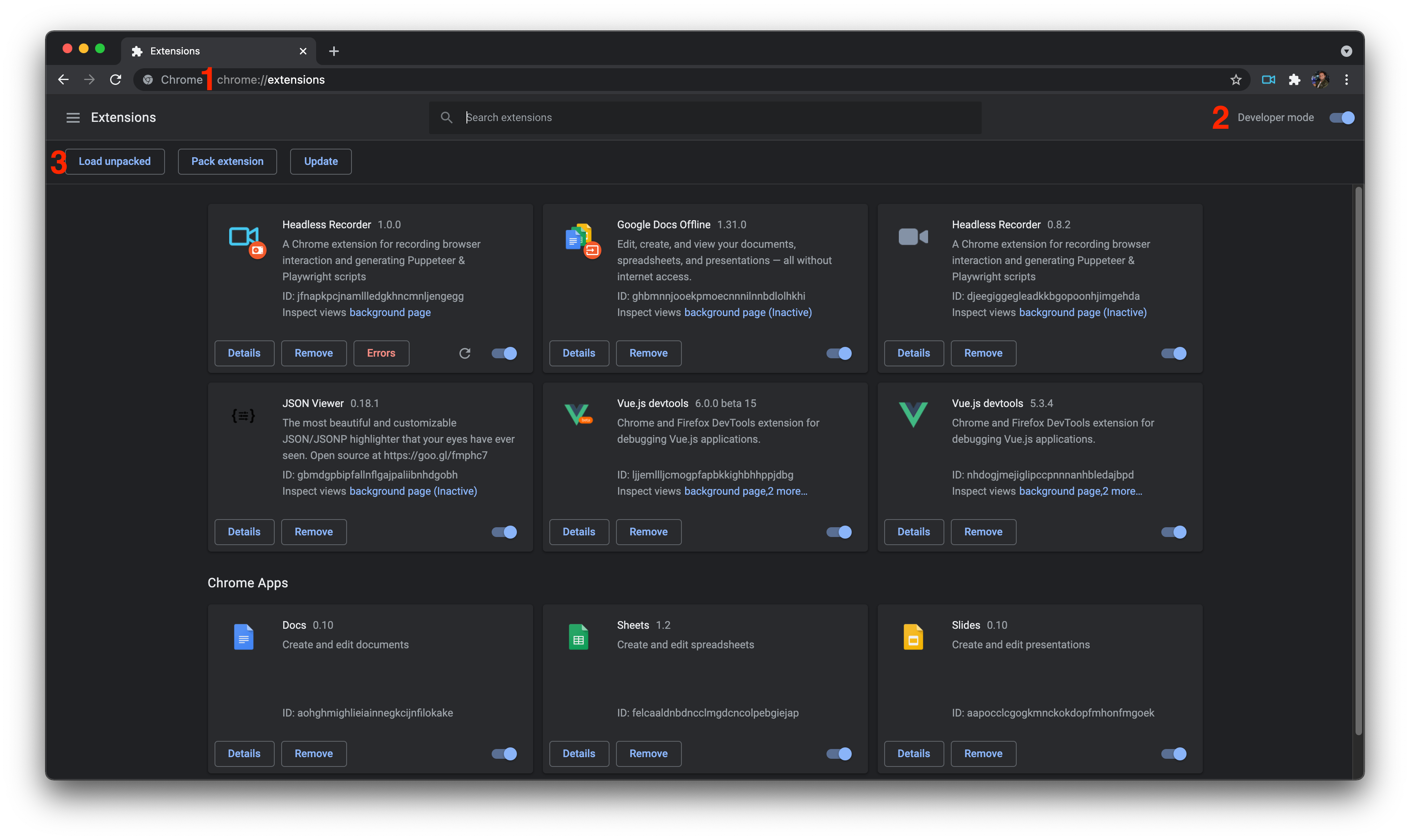 chrome://extensions. - Make sure "Developer mode" is enabled.
