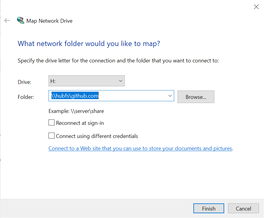 ./hubfs github.com/ORG H:will place the root of the file system withinORGand thus make available the repositories inORGonly. Files within the file system will be accessible as / repository / ref / path.