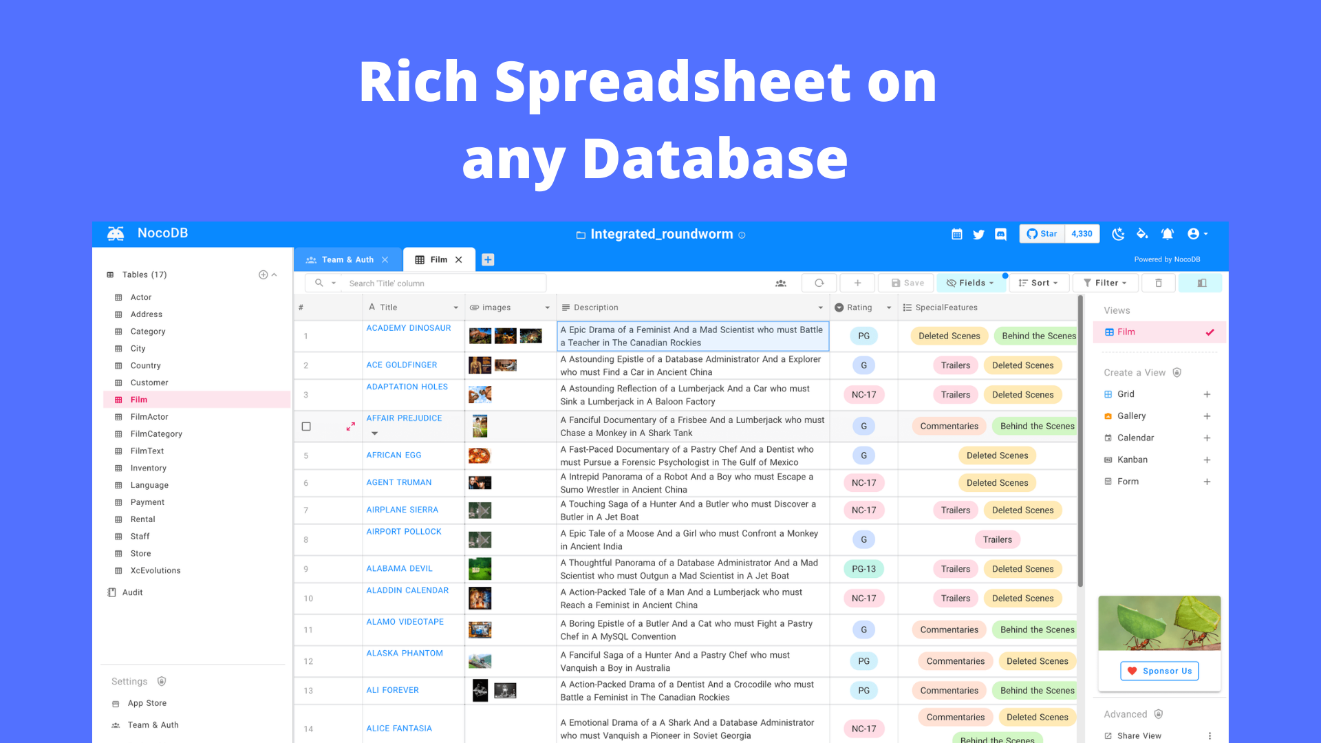 NocoDB requires a database to store metadata of spreadsheets views and external databases.